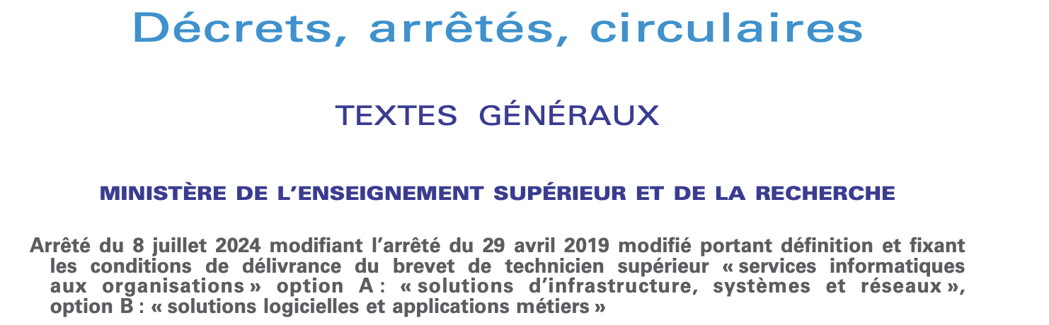 Il s'agit de la référence officielle à consulter pour toutes questions sur le BTS, les compténces enseignées, les modalités de déroulement des cours et des examens, etc.
