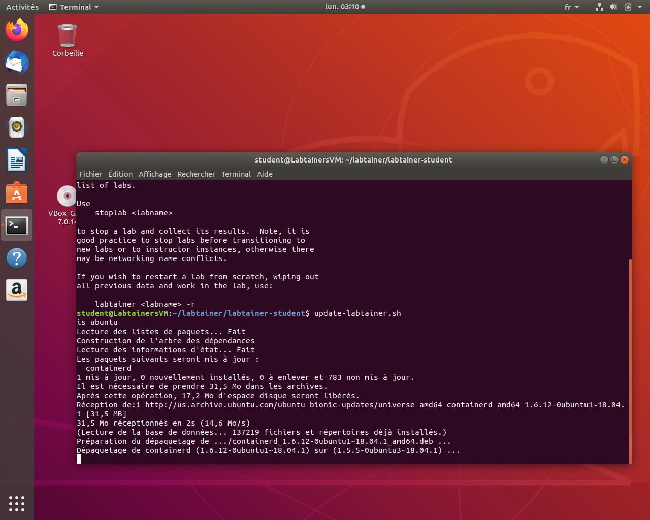 exécutez la commande update-labtainer.sh (à partir de votre répertoire labtainers-student).
