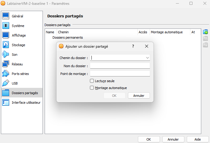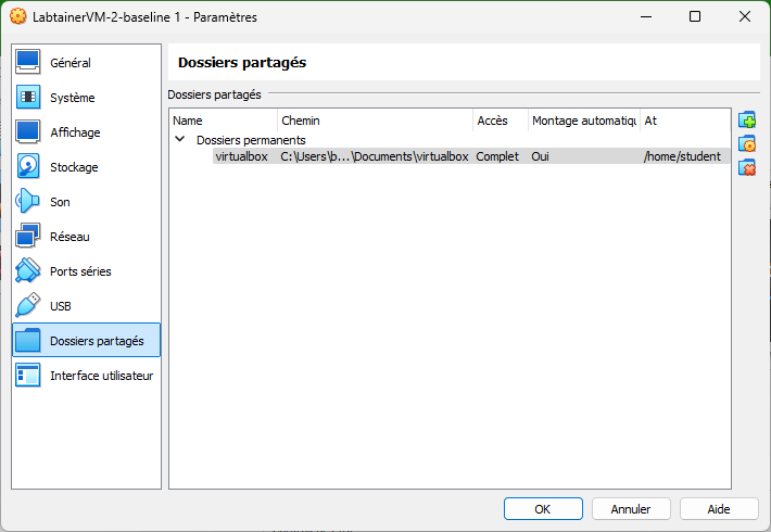 Nous allons mettre en place le partage de fichiers, entre la machine hôte (Windows) et la VM (Labtainer).