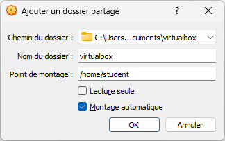 Parfois, le partage de fichiers entre la VM et la machine hôte, empêche l'utilisateur de se connecter.