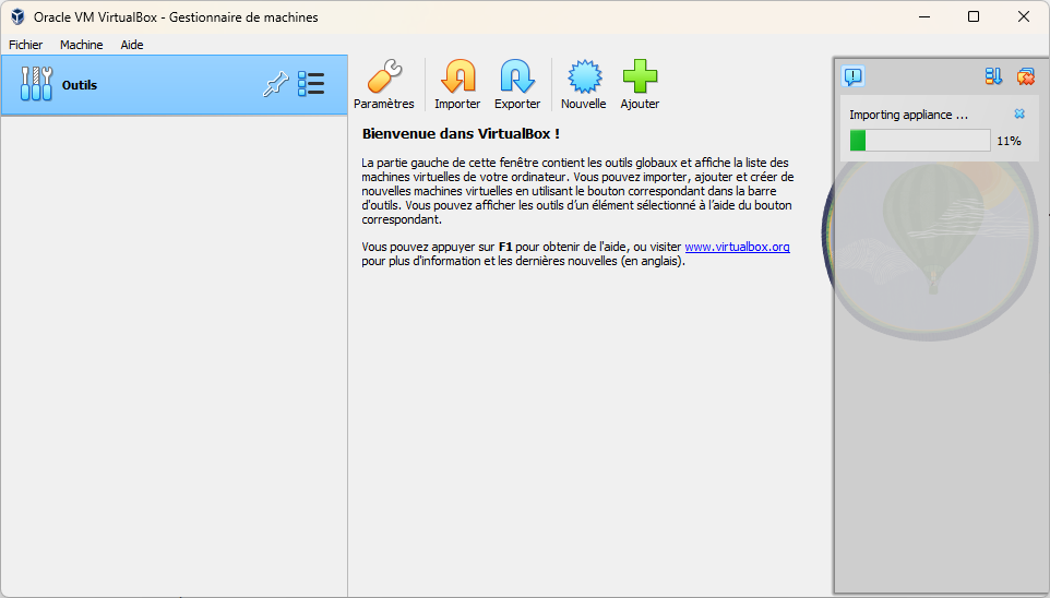 Si VirtualBox n'est pas installé sur votre machine, vous pouvez consulter le tutoriel sur VirtualBox.