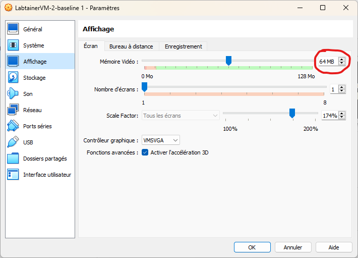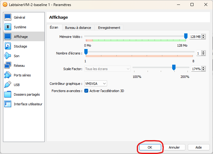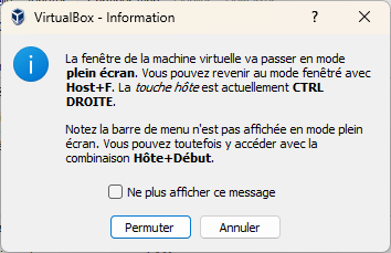 • Faites passer la fenêtre de la VM en Mode mise à l'échelle (CRTL + C).