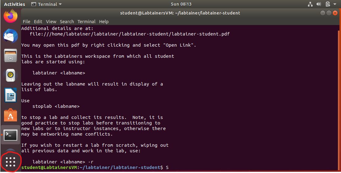 • Pour démarrer un laboratoire, il suffit de saisir la commande labtainer nom_du_labo,