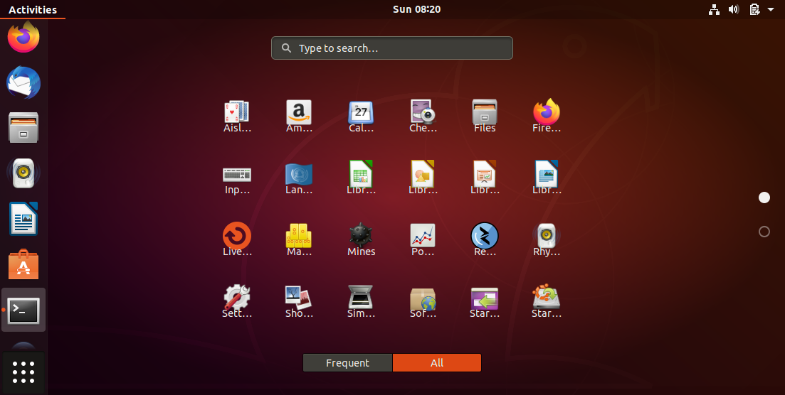 • Cliquez sur le bouton Show applications, en bas à gauche de l'écran, représenté par 9 points blancs.