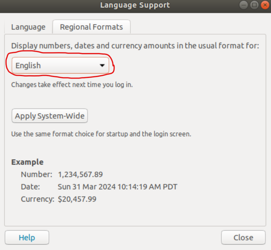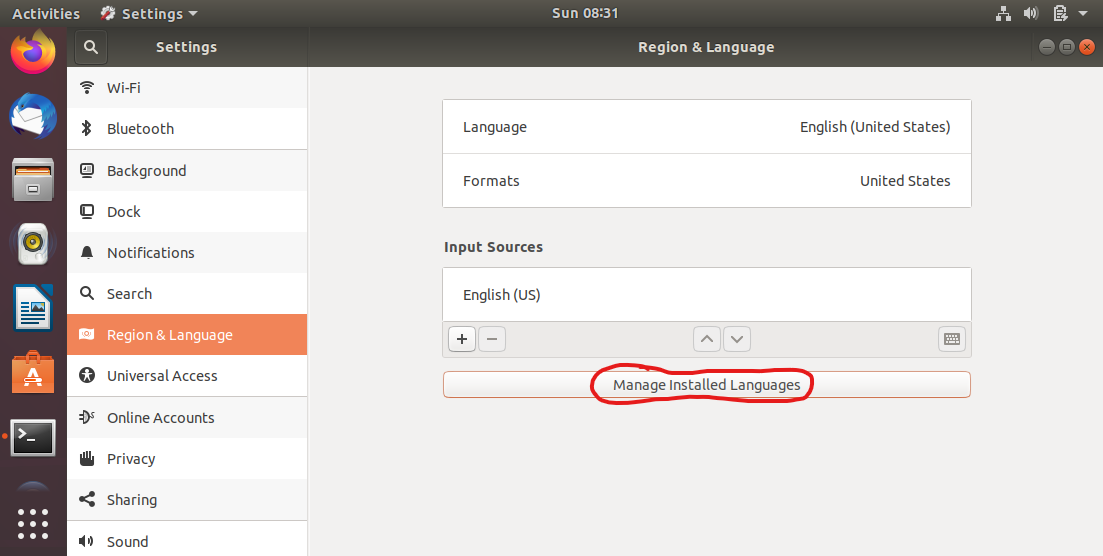 • ce qui va afficher lang, afin de faire apparaître Region & Language