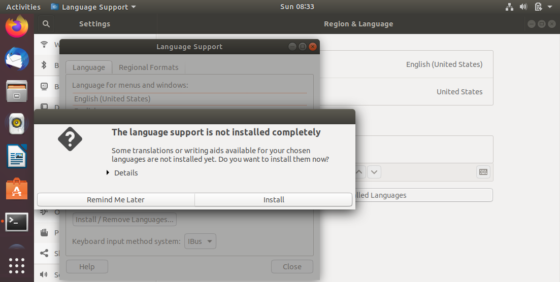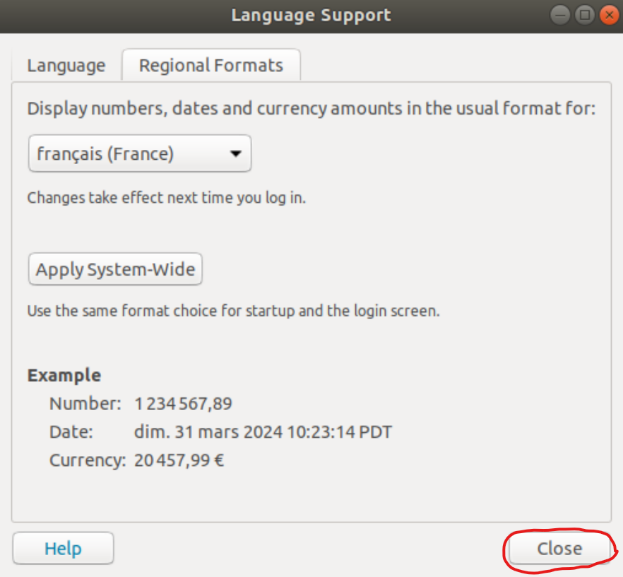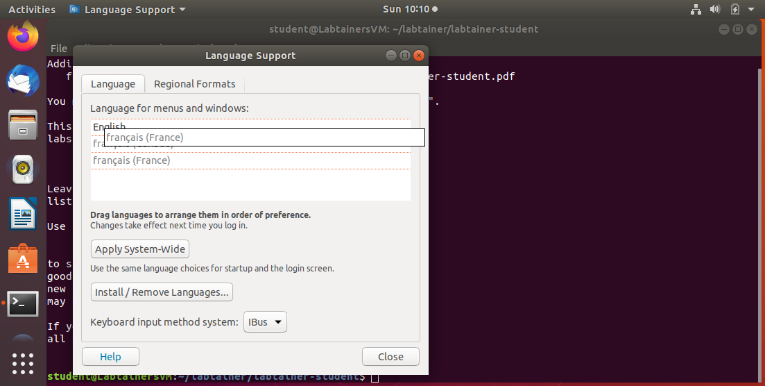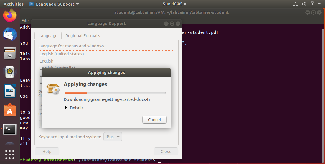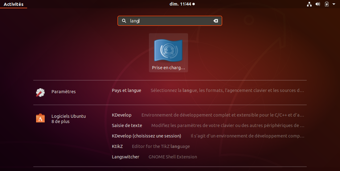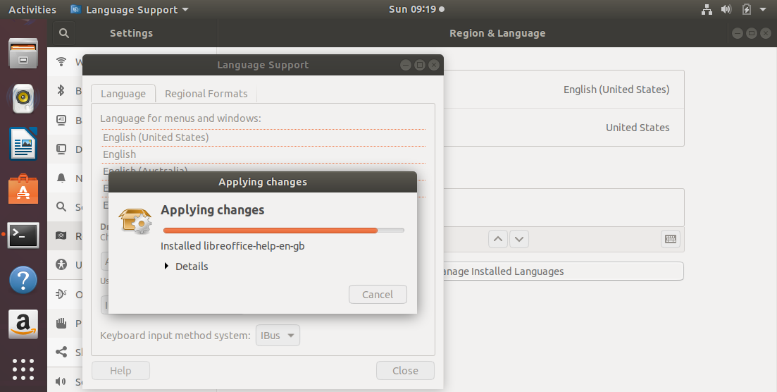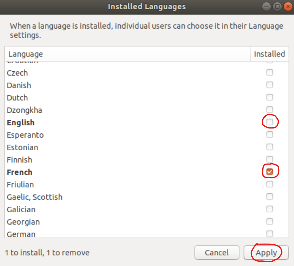 • Lorsque les paquets des langues sont installés, la fenêtre suivante s'affiche.