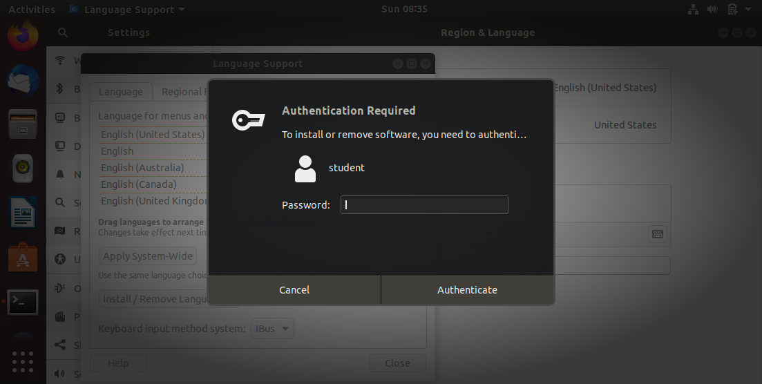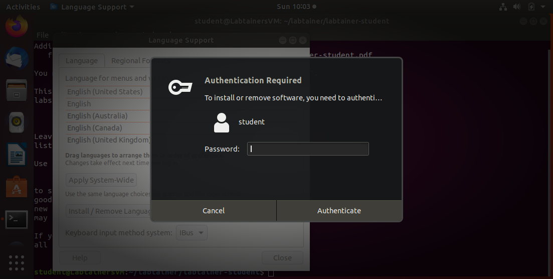 • Saisissez le mot de passe password123 (de l'utilisateur student).