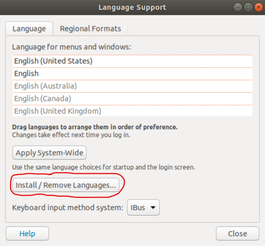 • Cliquez sur le bouton Manage Installed Langages pour ajouter le clavier français.