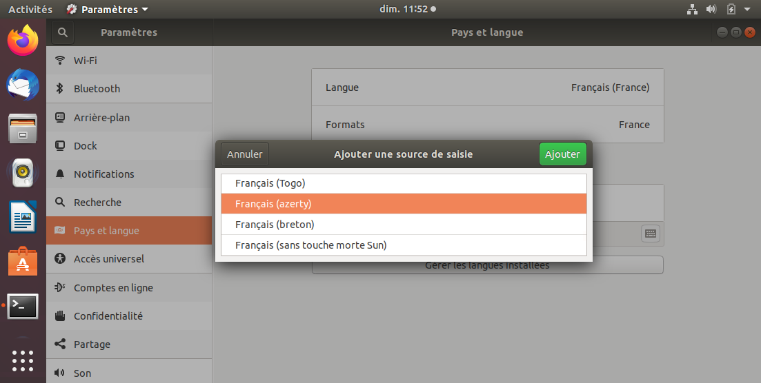 • Sélectionnez Français (azerty) et cliquez sur le bouton Ajouter.