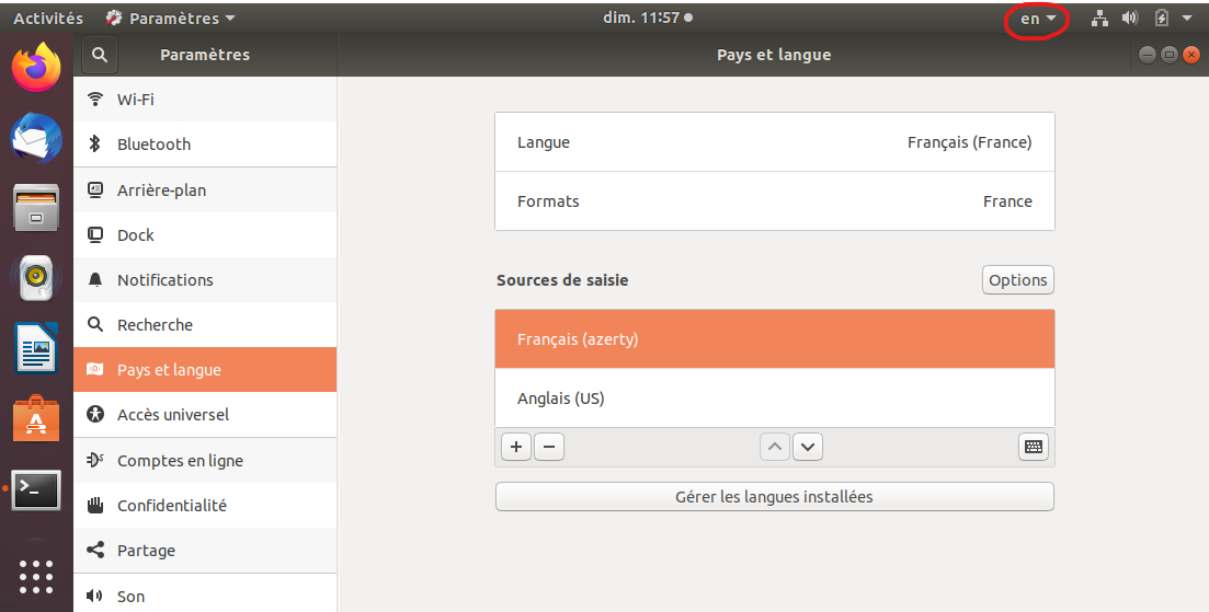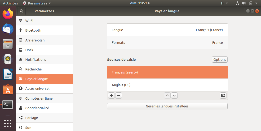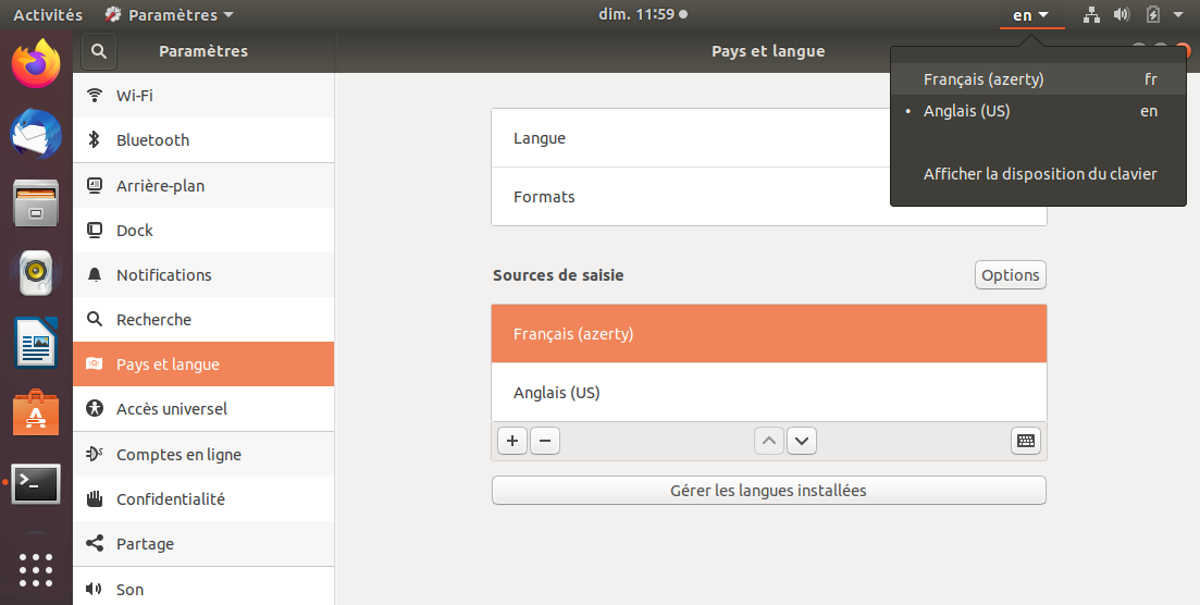 Le clavier étant en QWERTY, nous allons le mettre en français.