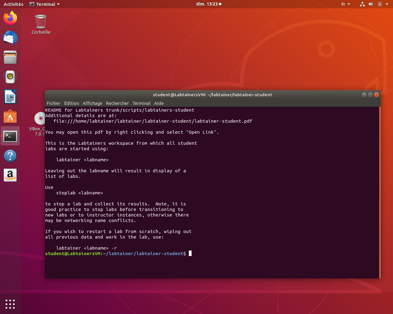 Voilà, votre VM Labtainer est installée et démarrée, nous allons maintenant la paramétrer pour nos futures expériences en Cybersécurité.