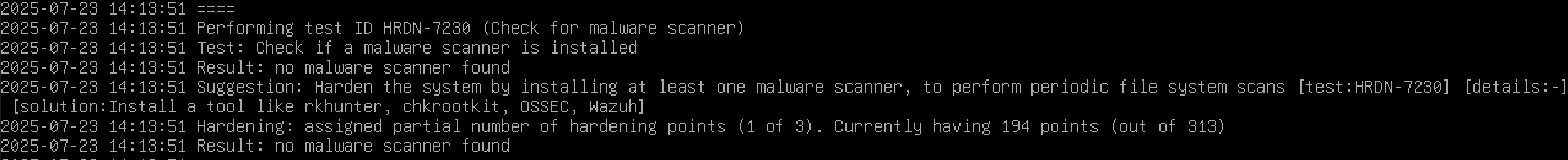 Par exemple, si Lynis affiche, dans son rapport, "No malware scanner found"
