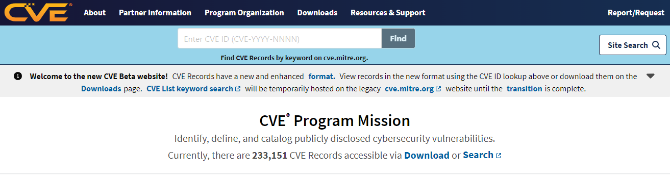 • Géré par : Le CVE est géré par le MITRE Corporation, une organisation à but non lucratif qui gère également d'autres bases de données de sécurité et standards.