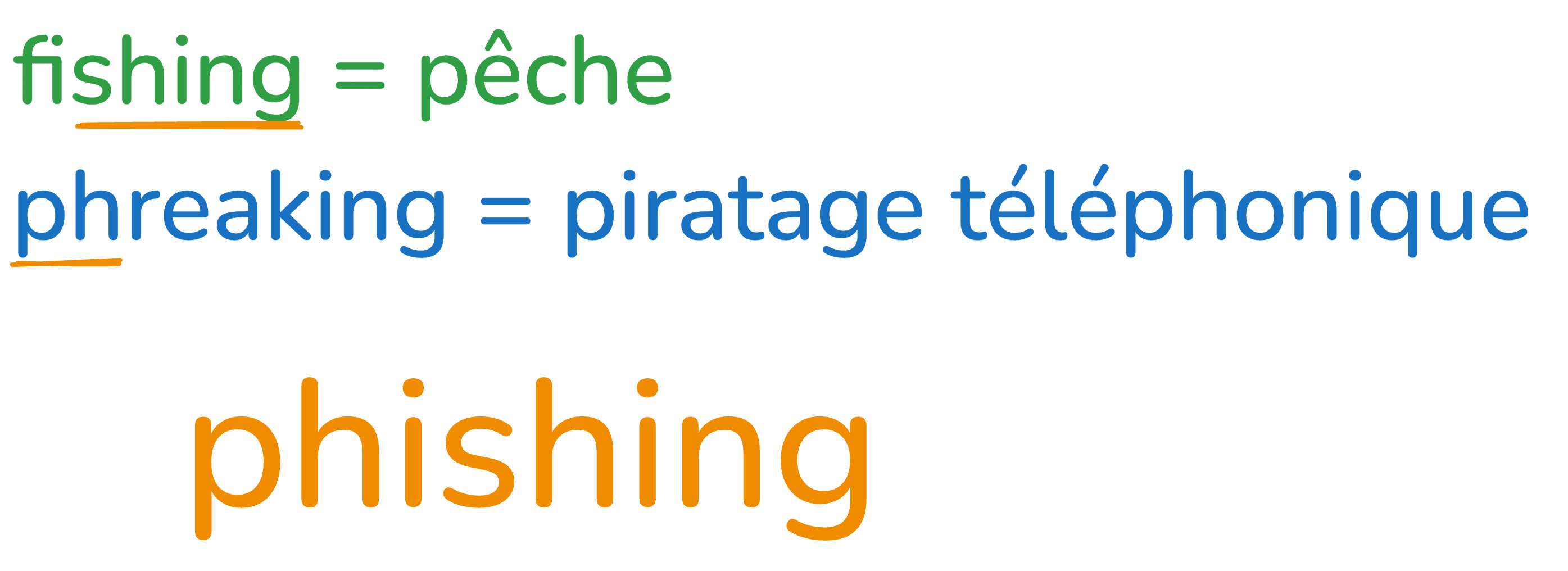 - phishing → l'« hameçonnage », la technique frauduleuse visant à dérober des informations en leurrant la victime.