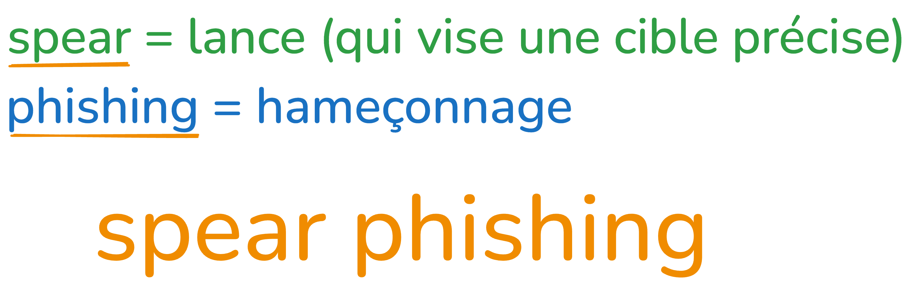 Ensemble, spear phishing décrit l'action de cibler un individu spécifique avec une attaque d'hameçonnage, comme si on lui lançait un harpon au lieu de lancer un large filet.