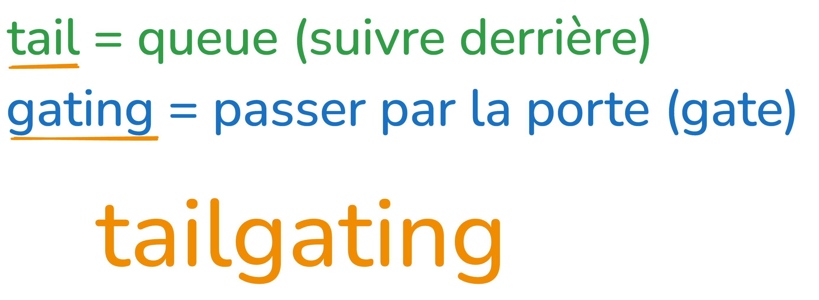 - tail → « celui qui suit derrière » (une « queue » de personnes ou de véhicules).