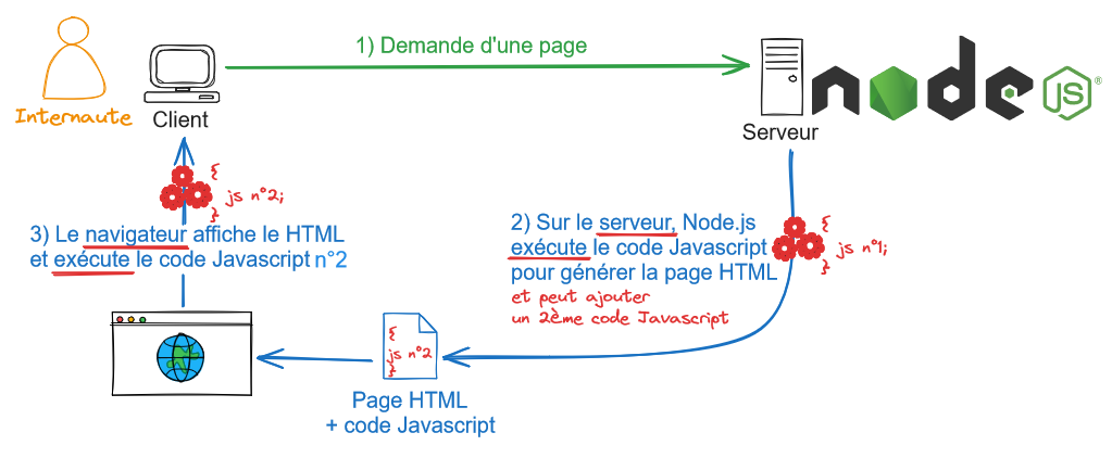 Avec Node.js, le code Javascript est exécuté sur le serveur.