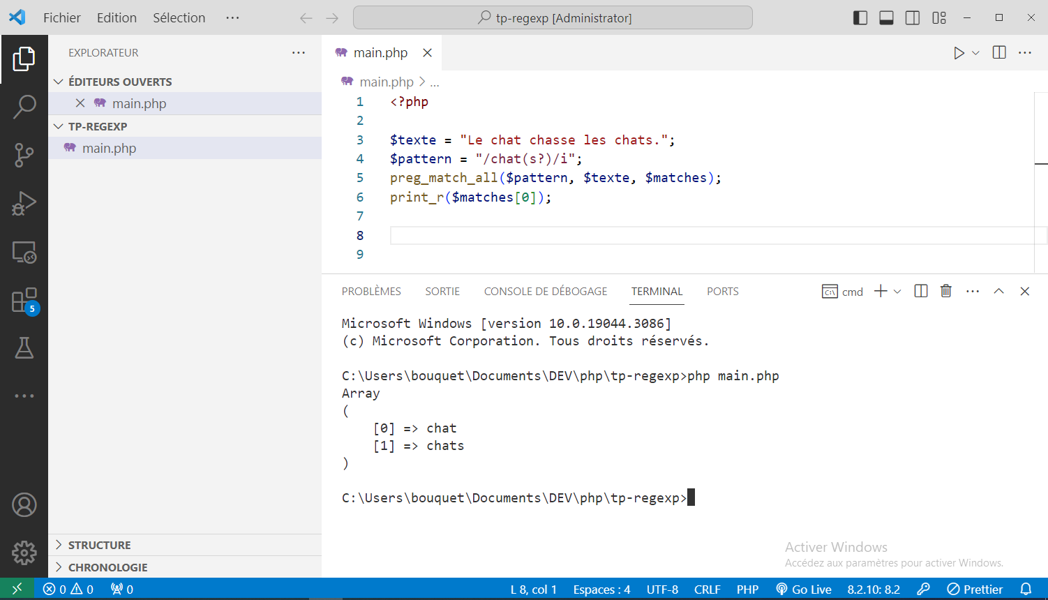 Consigne : Écrivez un fichier PHP tp-regexp1.php