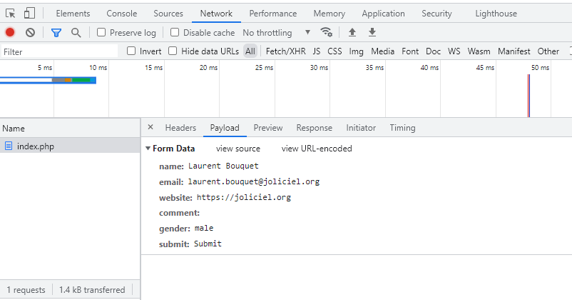 Dans index.php, nous pouvons récupérer les données du formulaire :