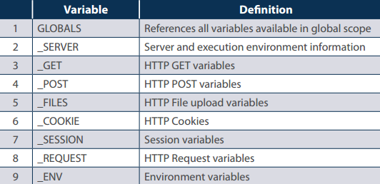 $_GLOBALS: Cette variable référence toutes les variables disponibles dans la portée globale.