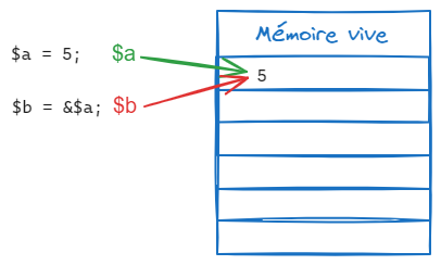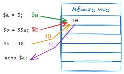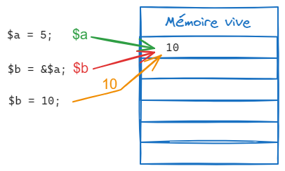 Les références en PHP permettent à deux variables de faire référence à la même valeur en mémoire.