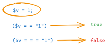 $v === "1" // Renvoie false car même si $v a la valeur 1, elle est de type entier, tandis que "1" est une chaîne de caractères.