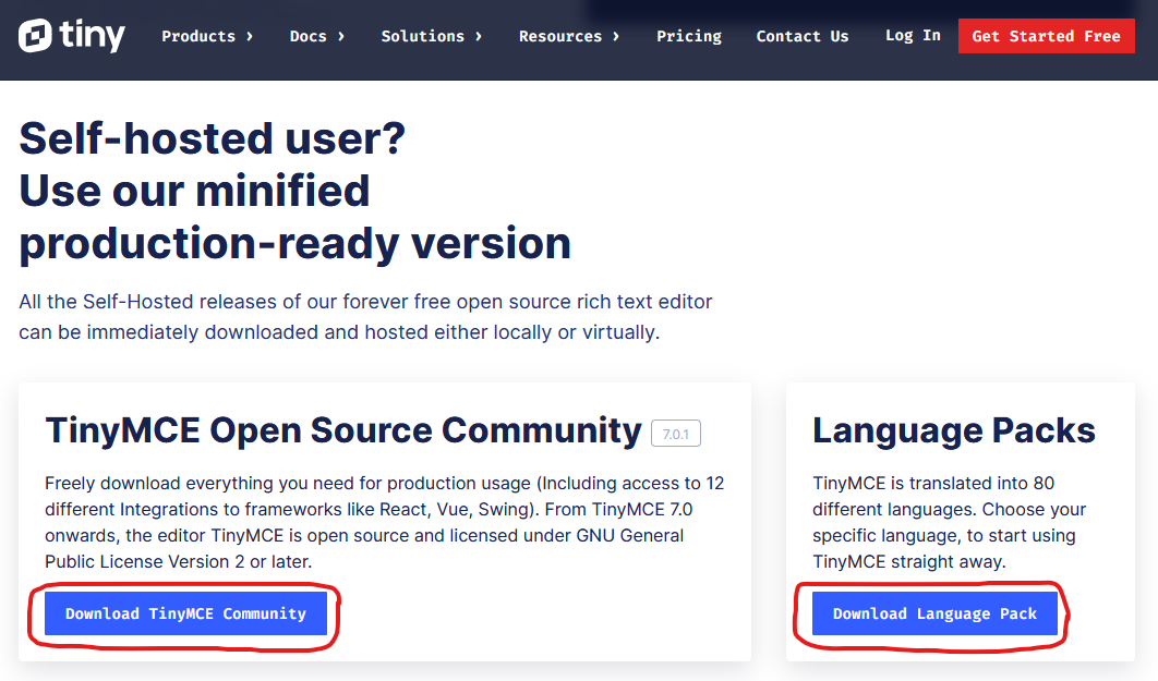 - Pour télécharger le fichier ZIP TinyMCE : https://www.tiny.cloud/get-tiny/