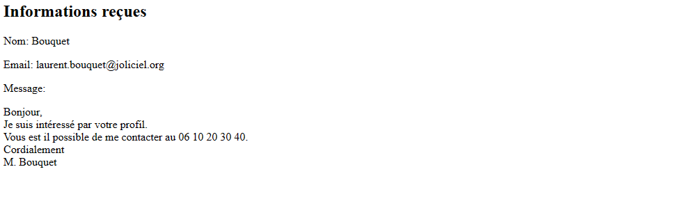 - Écrivez le script PHP qui traitera les données soumises et les affichera sur une nouvelle page ou dans un bloc