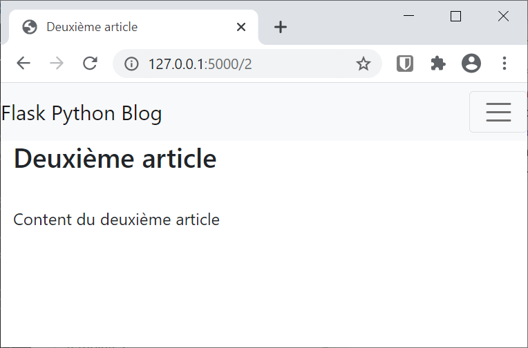À la fin de cette étape, l'URL http://127.0.0.1:5000/1 sera une page