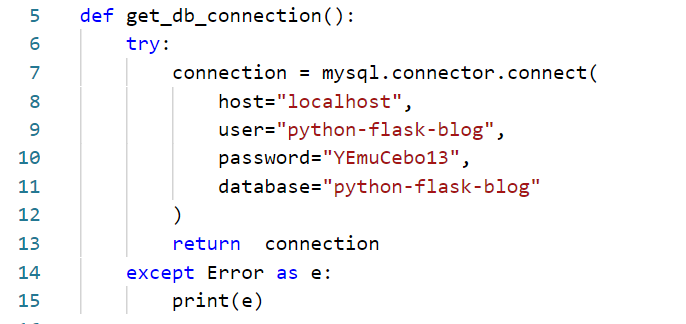 Ensuite, nous allons créer une fonction qui crée une connexion à la base de données et la renvoie. Ajoutez-la directement après l'importation :