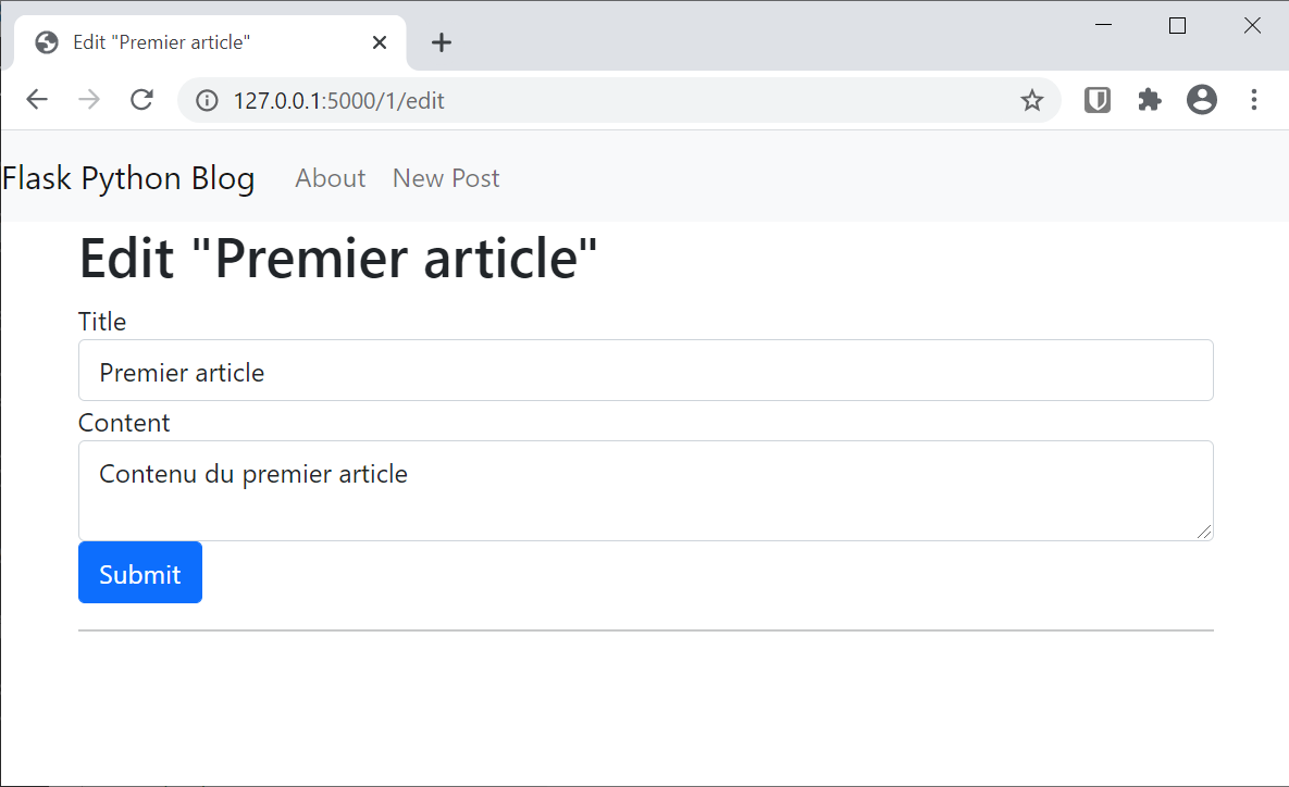 Nous allons maintenant créer une nouvelle page dans notre application Web afin de simplifier le processus de modification d'un article.