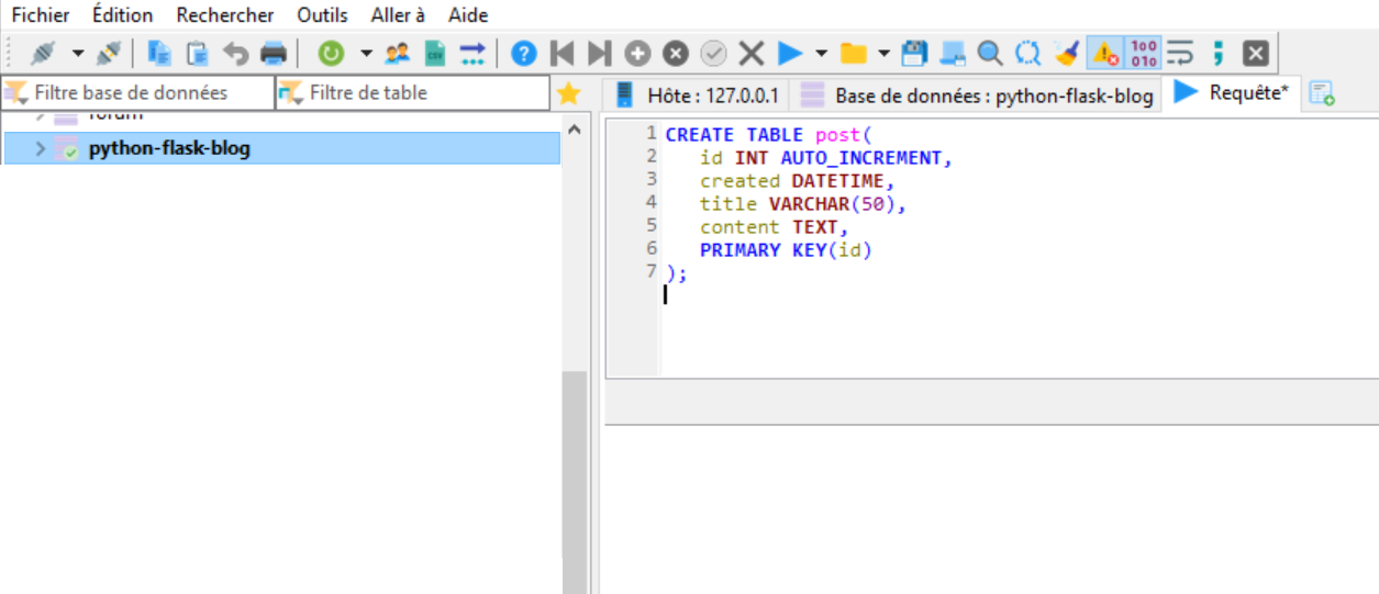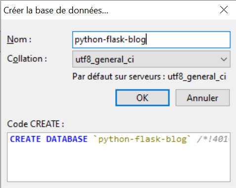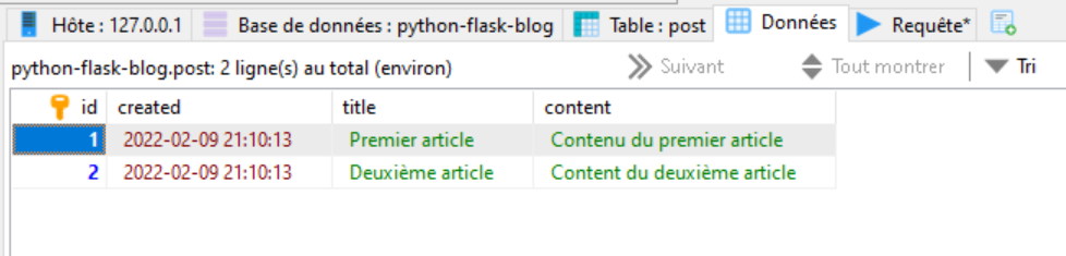 base de données « python-flask-blog » :