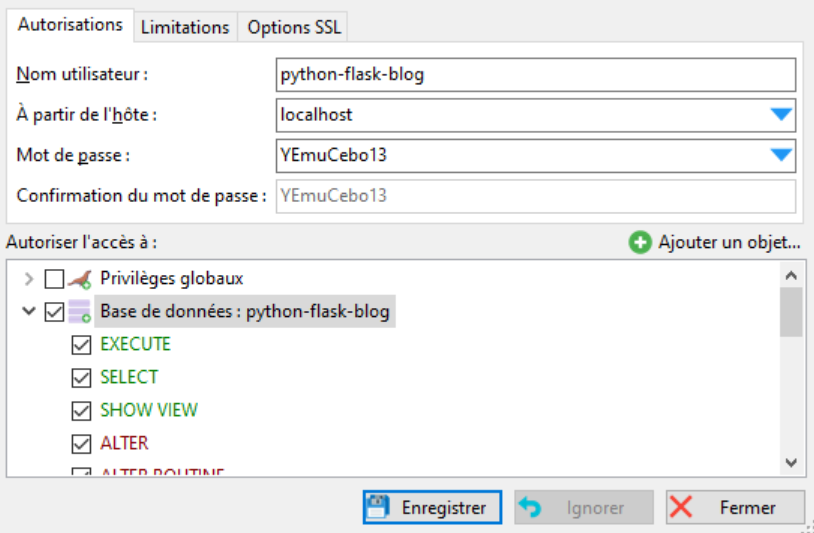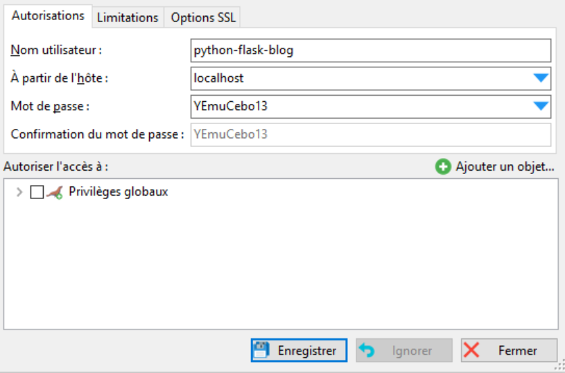 Créer un utilisateur dédié à cette base de données