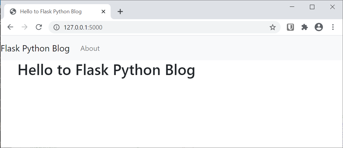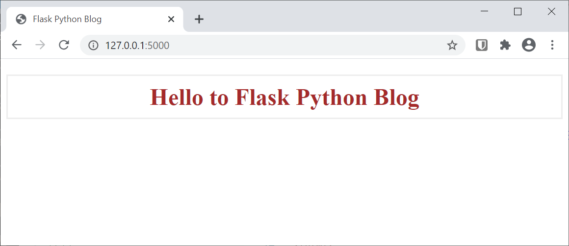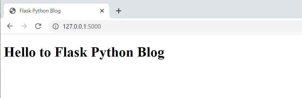Cette fois, le navigateur doit afficher le texte Hello to Flask Python Blog dans une balise <h1>.