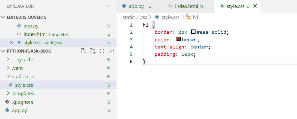 Ensuite nous allons créer un fichier style.css à l'intérieur du