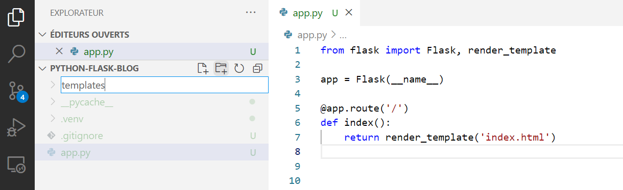 application Web app.py. Ce fichier contiendra tout le code que nous