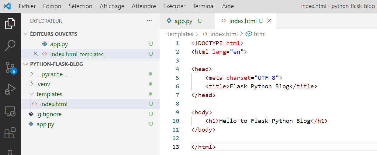 par le texte Hello to Flask Python Blog. De cette façon, vous pouvez