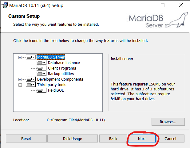 mariadb-x.x.x-winx64.msipour lancer l'installation du serveur et du client SQL MariaDB.