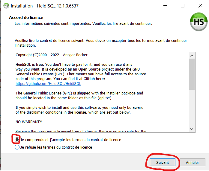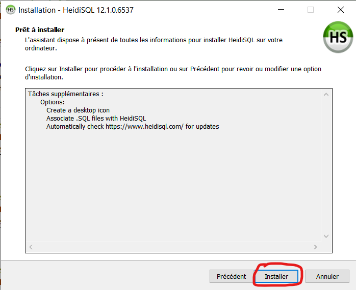 HeidiSQL_x.x.x.x_Setup.msipour installer le client SQL HeidiSQL sous Windows.