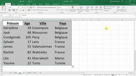 Voici un exemple de données structurées, dans une feuille du tableur :