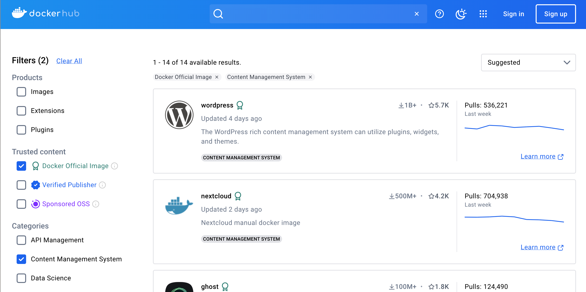 Par exemple, pour rechercher l'image officielle du serveur Apache, il suffit de saisir :