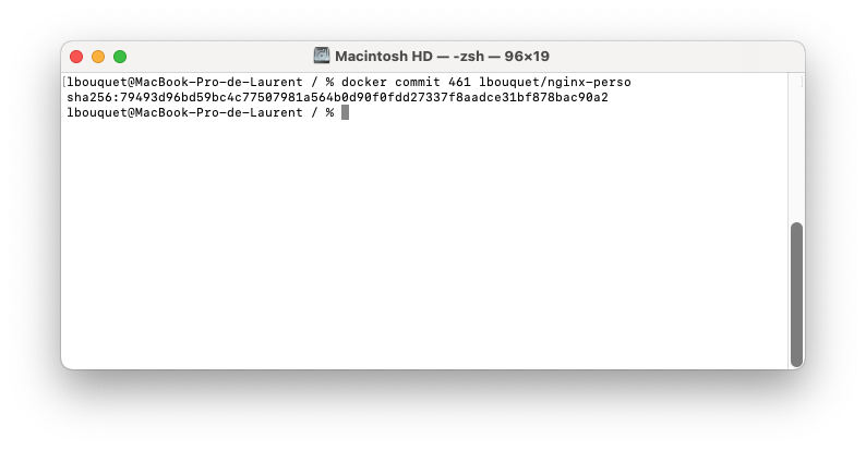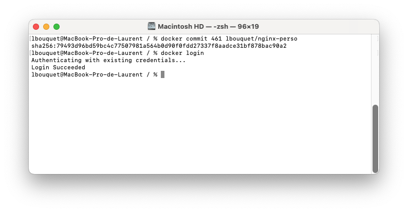 docker commit CONTAINER_ID USERNAME/nginx-persoinfoUSERNAMEest l'identifiant que vous utilisez pour vous connecter au Docker Hub sur le site https://hub.docker.com/. -