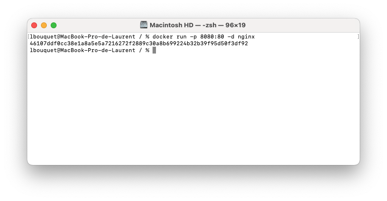 nginx:docker run -p 8080:80 -d nginxastuceNotez bien le CONTAINER_ID du conteneur.