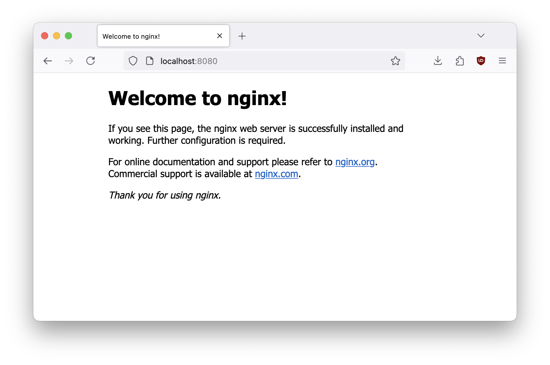 docker exec -it CONTAINER_ID bash.Vous pouvez vérifier le bon fonctionnement du serveur Web à l'aide de votre navigateur :