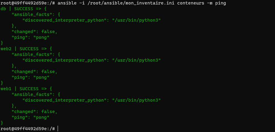 ansible -i /root/ansible/mon_inventaire.ini conteneurs -m ping