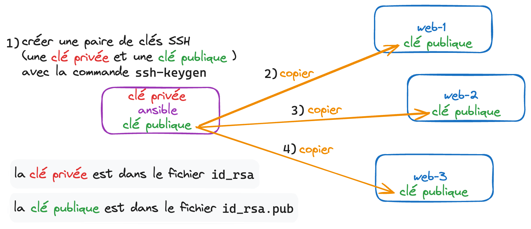 Pour permettre au serveur Ansible de communiquer avec les serveurs cibles via SSH, il suffit de suivre ces étapes :