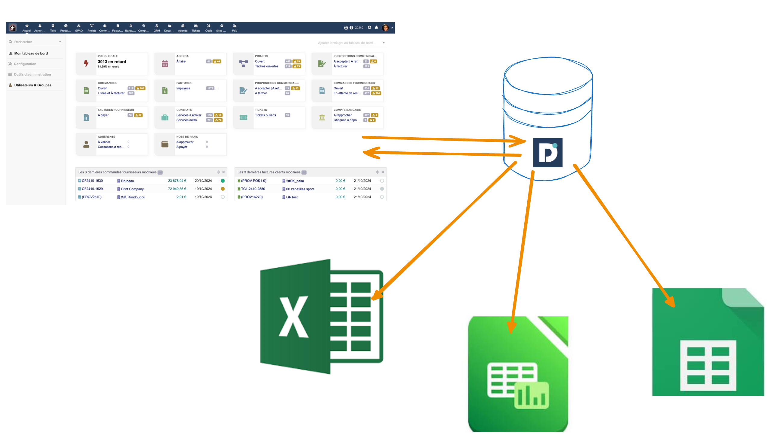 Il est possible de se connecter à la base de données de Dolibarr avec Google Sheets.