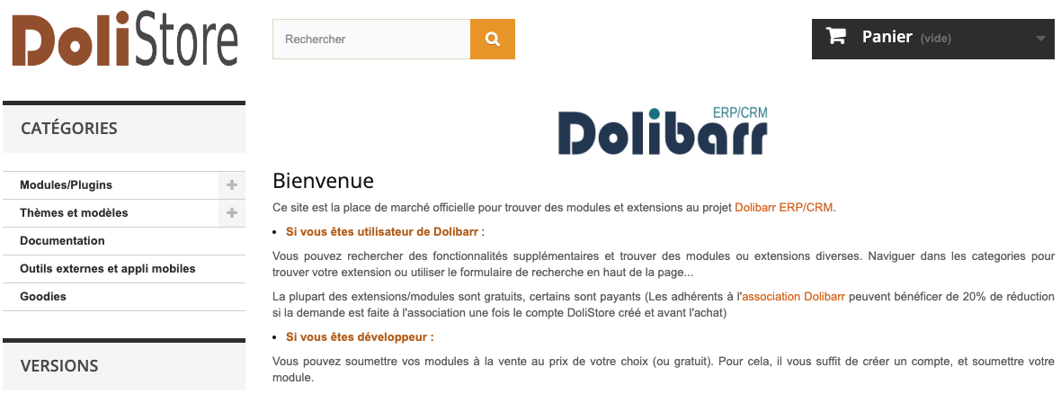DoliStore est un marché pour les modules de Dolibarr qui ajoutent des fonctionnalités à Dolibarr.
