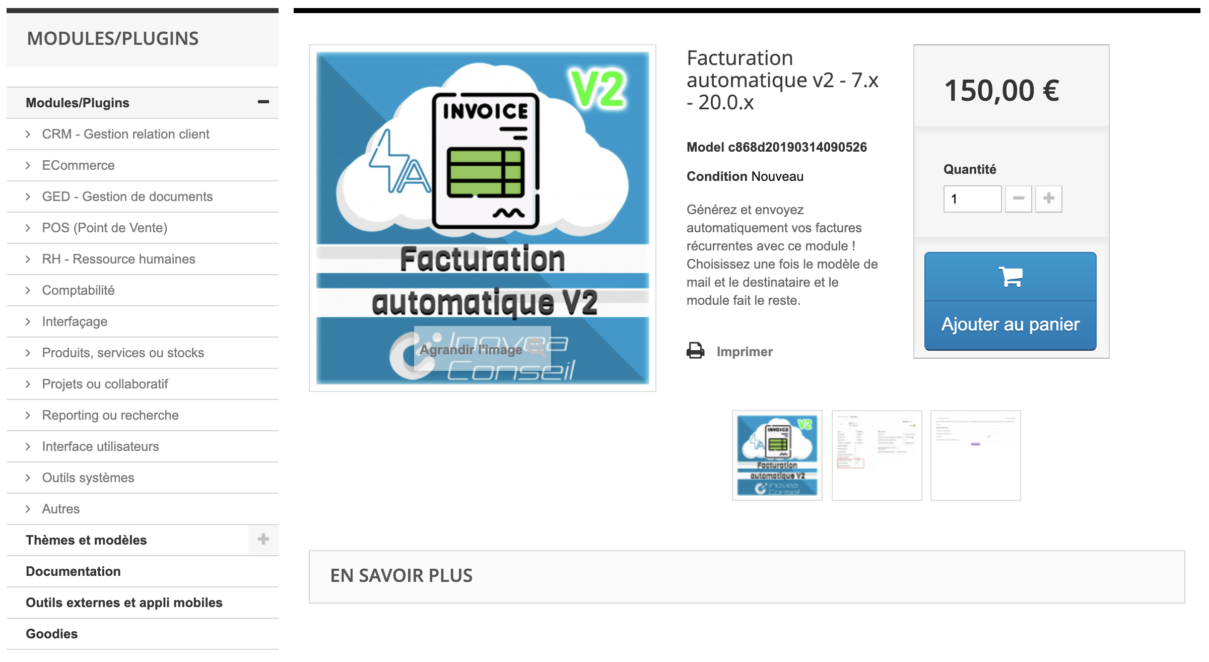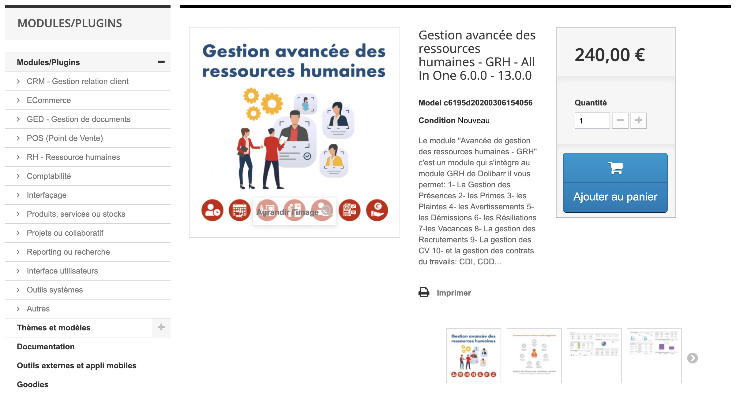 Choisir un module : Cliquez sur le module qui vous intéresse pour accéder à sa fiche descriptive. Vous y trouverez des informations détaillées, telles que les fonctionnalités, les prérequis et le prix.