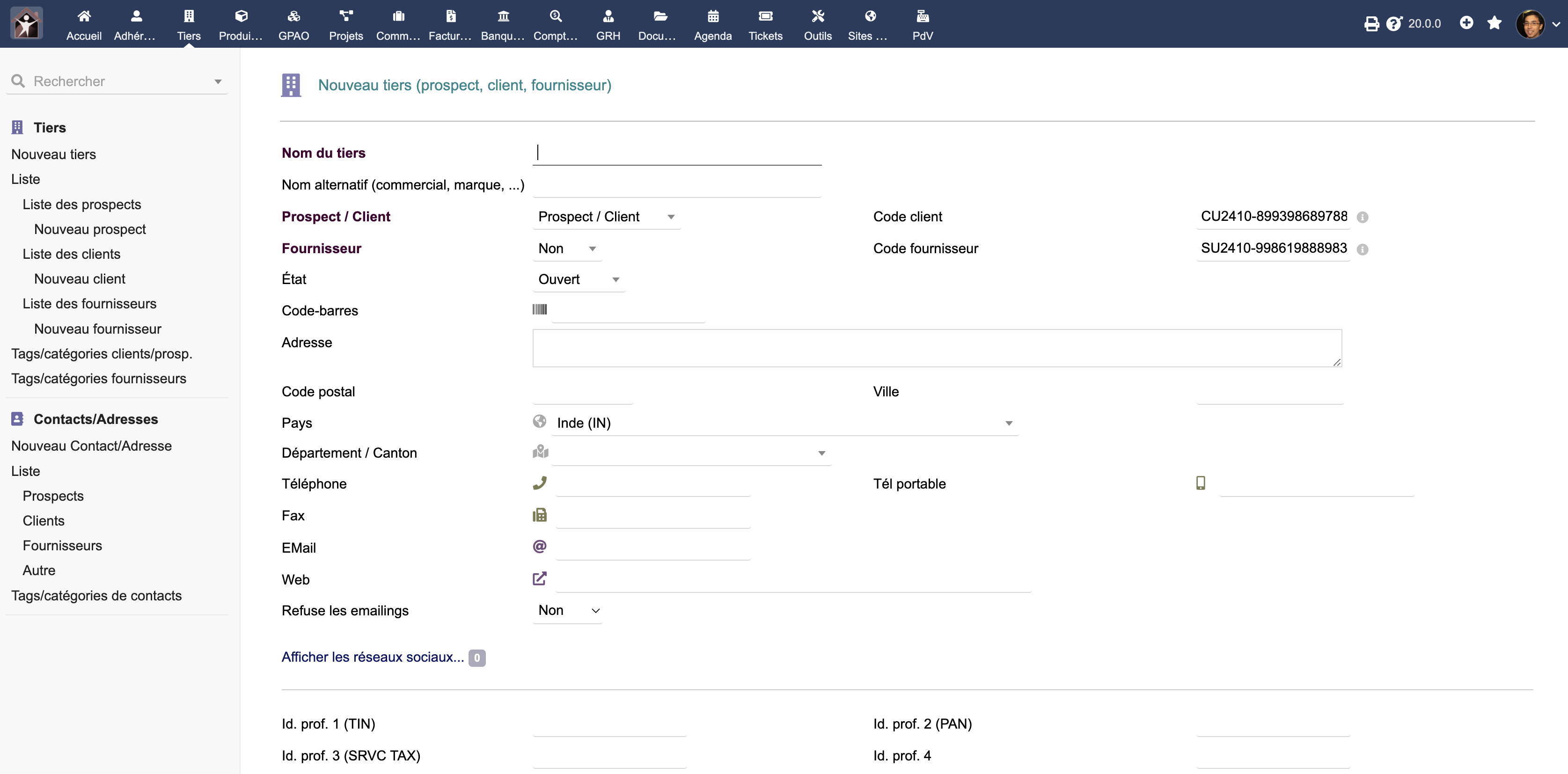 Une fois les informations remplies, cliquez sur CRÉER TIERS pour enregistrer ce nouveau client.